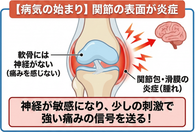 1. 【病気の始まり】「関節の表面」が炎症で敏感になっています