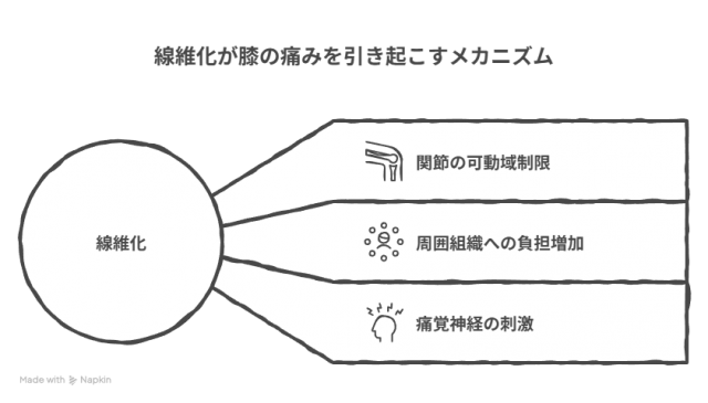 あなたの長引く膝の痛みや関節の強いこわばりは、軟骨がすり減るだけでなく、「関節の奥にある柔軟な組織が、硬い組織へと変化してしまっている(線維化)」。このことによって痛みが引き起こされている可能性が非常に高いということです。この硬さが、動くたびに周囲に負担をかけ、痛みを発生させているのかもしれません。