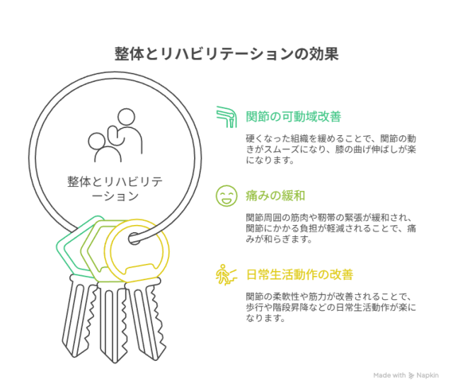 もし痛みの原因が「硬さ」にあるならば、関節の周りの硬くなった組織(線維化した組織)を丁寧に緩め、柔軟性を取り戻すための整体やリハビリテーションが、痛みを和らげる上で非常に大切になると考えられます。専門家と相談し、硬くなった部分にアプローチするケアを取り入れることが、毎日の快適さにつながるかもしれません。