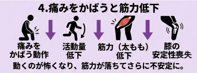 4. 痛みをかばう動作が、さらなる筋肉の低下を招く