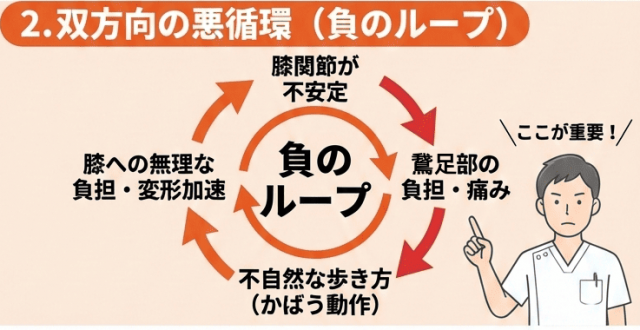 2. 痛みと変形が「双方向の悪循環」を作り出す